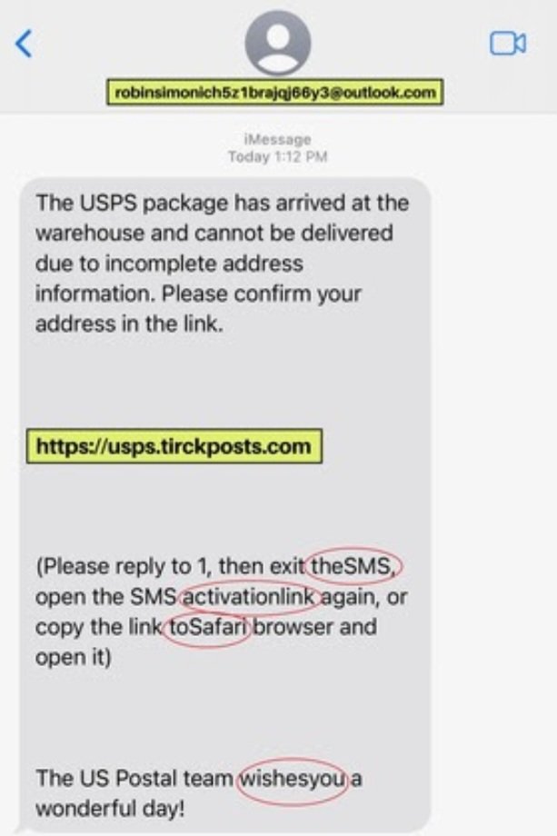 Asimismo, Nessel indicó que esta estafa de smishing es común y que se puede identificar por algunos indicios, como que el correo electrónico del remitente proviene de un dominio público en lugar del dominio de la organización, que el enlace sugerido no coincide con el sitio web público de USPS y que hay errores tipográficos en el mensaje.