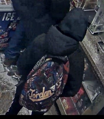 El hombre vestía una chaqueta negra abullonada , una sudadera negra con capucha, pantalones negros con rayas blancas, tenis color canela y una mochila multicolor «Jordan».