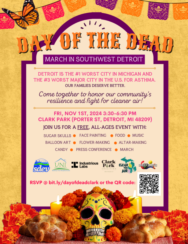 Detroit, MI– En el suroeste de Detroit, la comunidad se prepara para celebrar el Día de Muertos con un enfoque especial en la lucha por un aire más limpio. Este evento, que combina tradición y activismo, busca honrar a aquellos que han sufrido problemas de salud debido a la contaminación del aire causada por industrias locales, como la del acero, y el tráfico pesado de camiones.