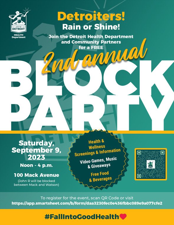 «Estamos invitando a todos los habitantes de Detroit a divertirse y unirse a nosotros en la fiesta de barrio más grande y saludable de Detroit», dijo Denise Fair Razo, directora de salud pública. “Queremos aprovechar esta oportunidad para invitar a todos a familiarizarse con todos los servicios que ofrece el Departamento de Salud de Detroit para promover una vida saludable.