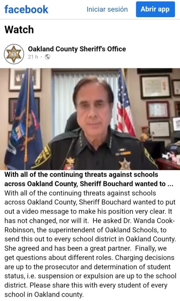 El Sheriff del condado de Oakland, Mike Bouchard, publicó un video con una advertencia a los imitadores después de las amenazas.