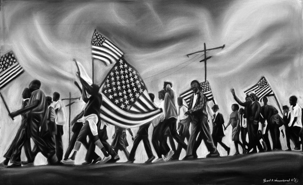 Washington’s “The Continual Struggle: The American Freedom Movement and the Seeds of Social Change,” is an ongoing body of artwork documenting the Civil Rights Movement and America’s historical struggle against segregation and other forms of race-based injunctions. The 23-piece exhibit vividly recalls a time when people were willing to go into the streets to protest injustice and inequality, according to the artist’s website.