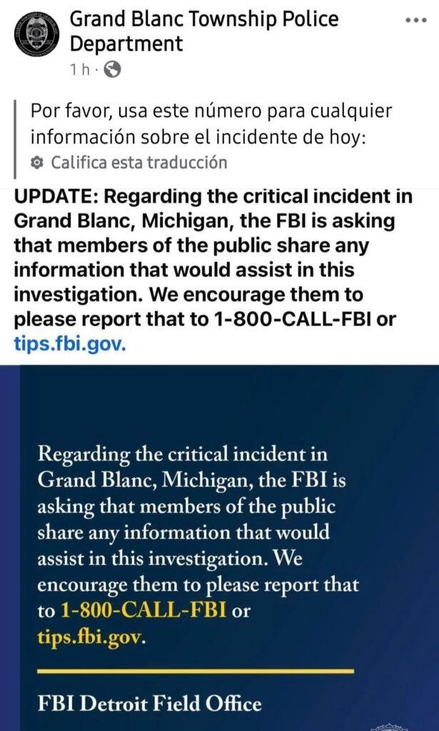 “La violencia en cualquier espacio, y especialmente en lugares de culto, es inadmisible”, declaró la gobernadora. “Michigan acompaña en el dolor a las familias afectadas y a toda la comunidad de Grand Blanc. Agradezco profundamente la rápida intervención de los socorristas”.