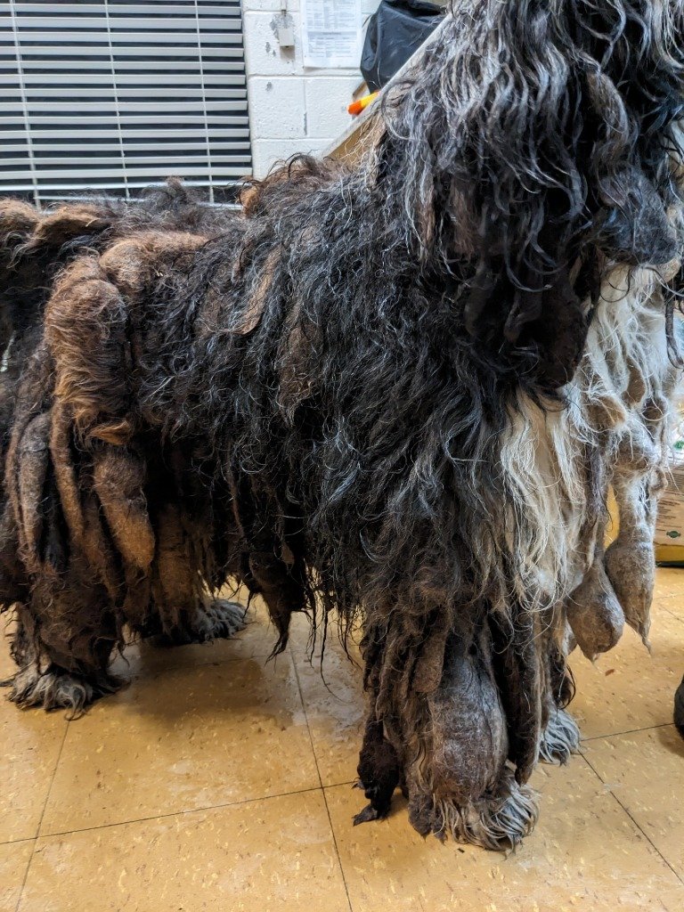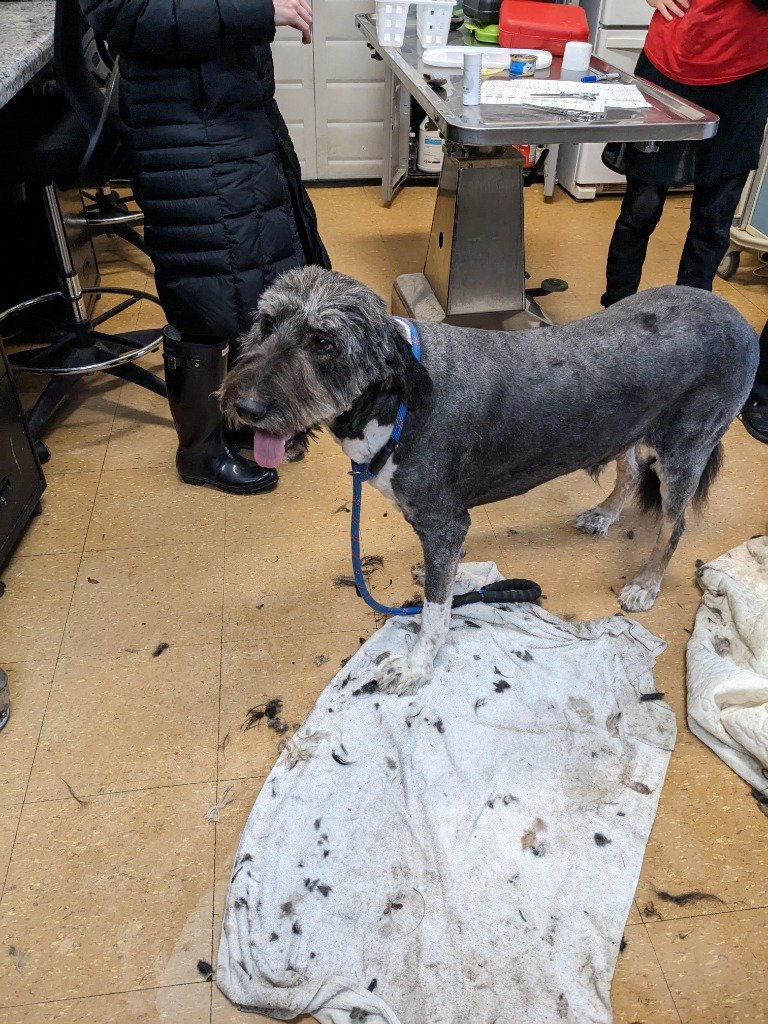 Dearborn, Mich. – Reggae es un perro grande y tranquilo que pesaba alrededor de 90 libras cuando fue rescatado por Dearborn Animal Control el pasado 1 de diciembre. El animal estaba cubierto de un pelaje muy enredado y empapado, que le causaba dolor e incomodidad. También tenía un collar de cadena que se le había incrustado en la piel. Los veterinarios de Friends for Animals of Metro Detroit lo afeitaron y le quitaron más de 11 libras de pelo. También le diagnosticaron gusano del corazón, una enfermedad grave que puede ser fatal si no se trata.