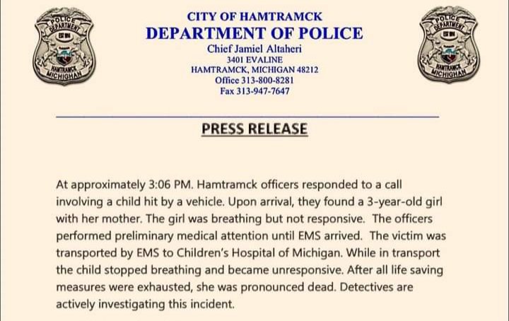 Hamtramck, MI – En un trágico incidente en Hamtramck, el martes (16 de julio) alrededor de las 3:06 p.m., una niña de 3 años perdió la vida después de ser atropellada por un autobús escolar.