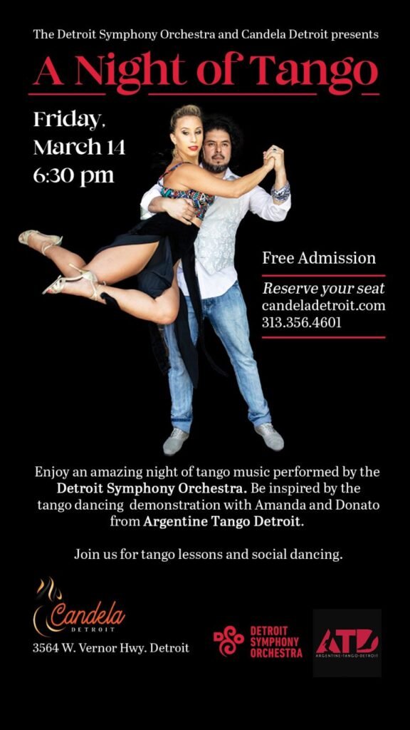 No te pierdas esta oportunidad única de sumergirte en el mundo del tango y disfrutar de una noche llena de música y baile. ¡Te esperamos en Candela Detroit!